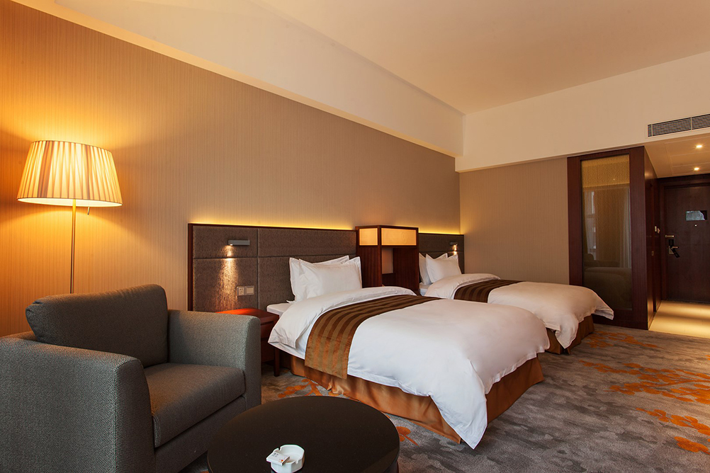 所有客房均设中央空调,并可通过房间墙上的控制⾯板调节房间温度。控制⾯板显⽰分别为室内温度和设定温度,室内温度为现室内温度,设定温度为您想调节的温度。